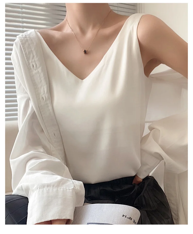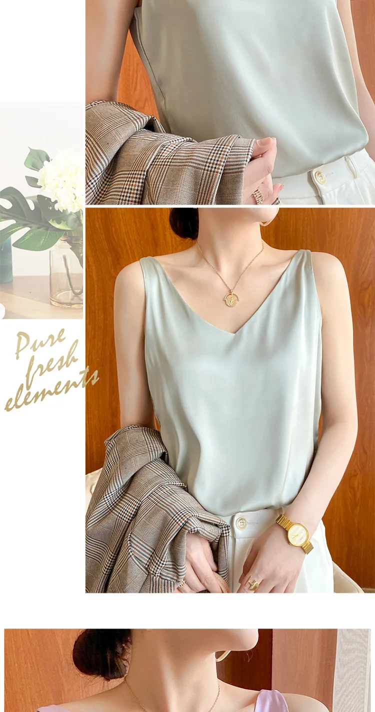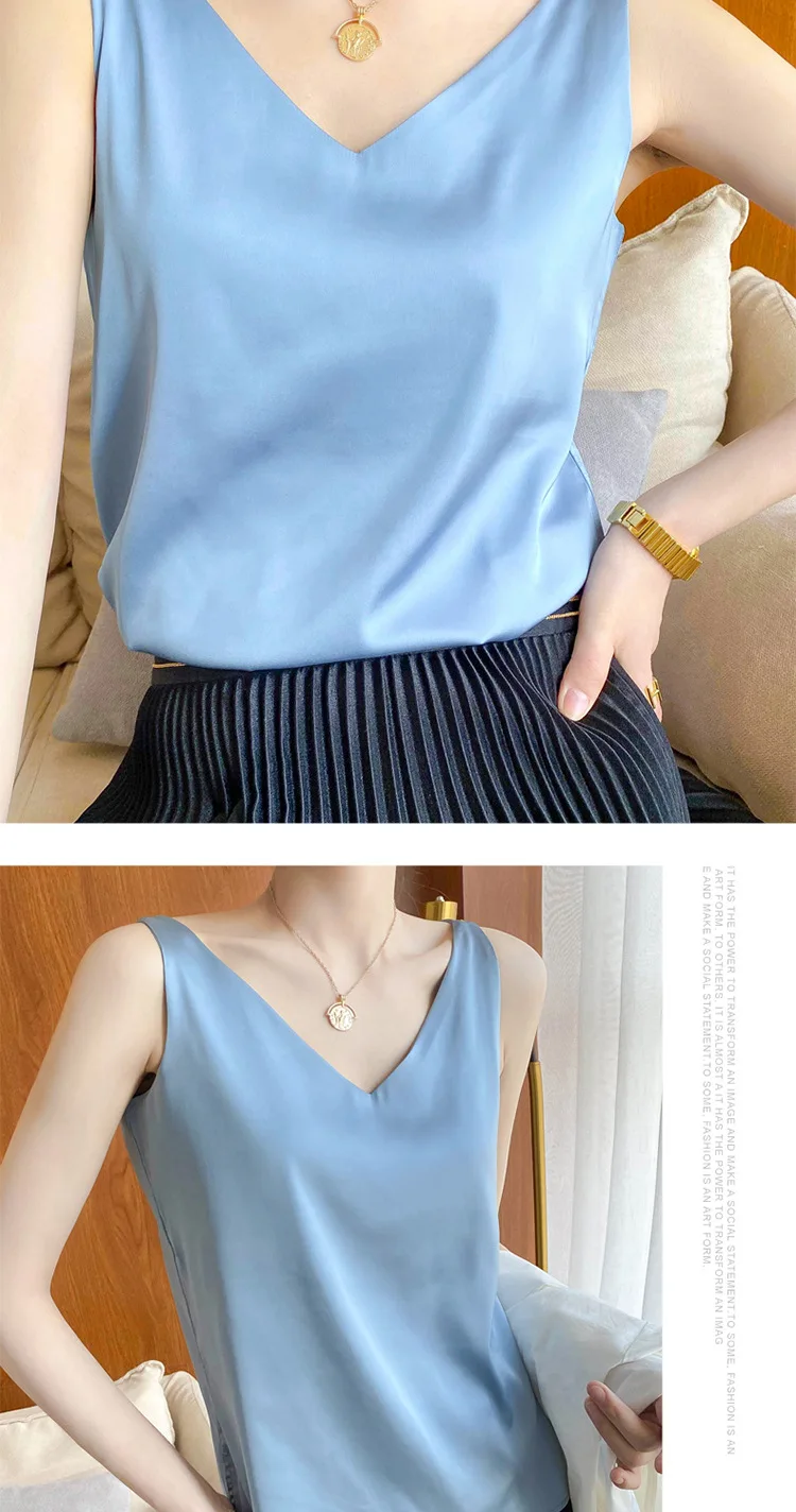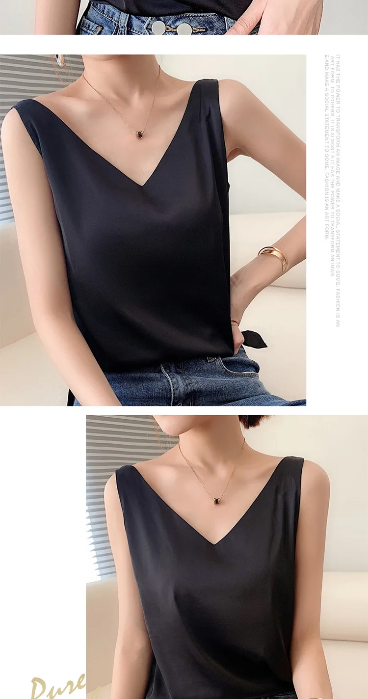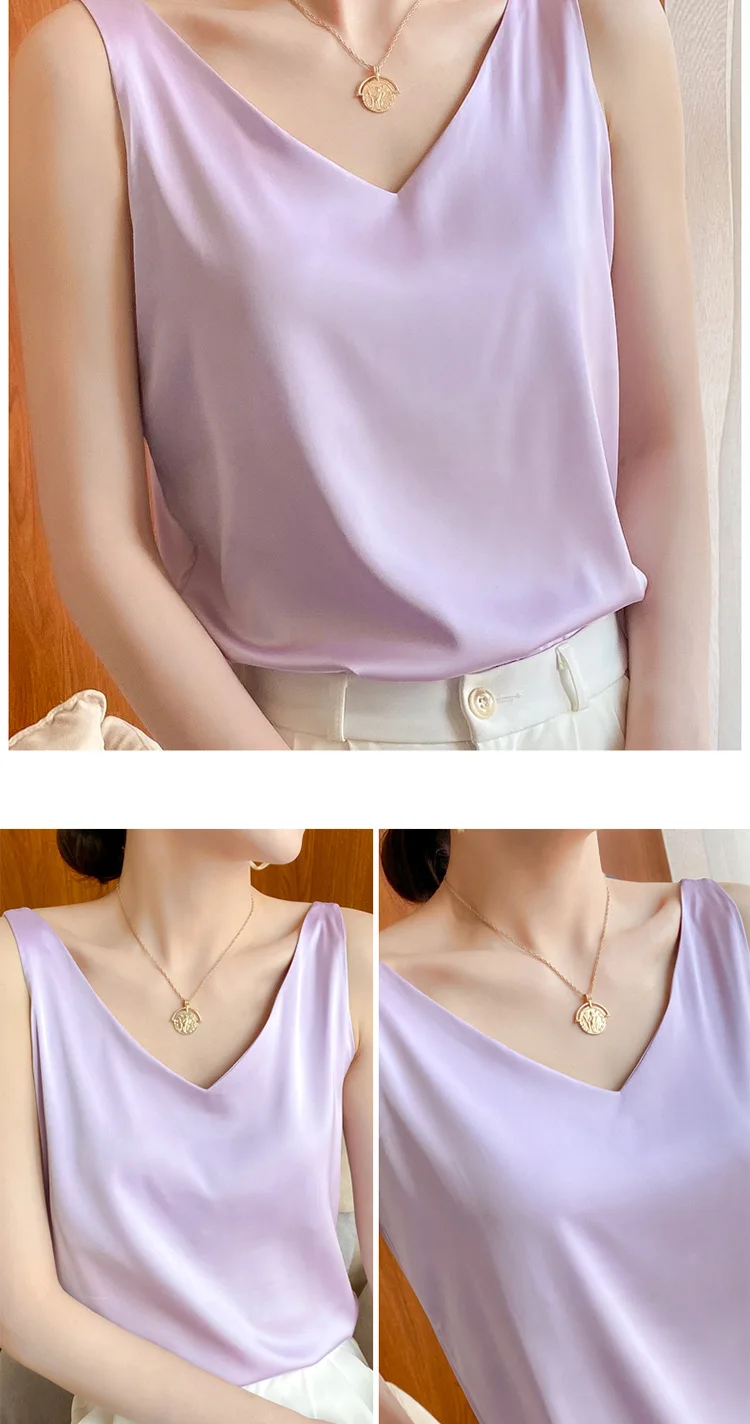✨ Regata de Alça Feminina em Cetim com Decote em V ✨